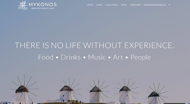 Tawerna MYKONOS oferuje szeroki wybór dań kuchni greckiej, przygotowanych z wysokiej jakości składników, takich jak świeże warzywa, mięsa, ryby i owoce morza. Lokal słynie z nowoczesnych wnętrz i różnorodności potraw, które serwowane są na śniadania, lunche, obiady oraz wieczory z muzyką i tańcem. Kuchnia pod kierownictwem szefa Theodorosa Vogdanosa, znanego z pracy w restauracjach takich jak El Greco i Paros, cechuje się lekkością i zdrowym podejściem do gotowania. Używane produkty, w tym oliwa z oliwek, sery i oliwki, pochodzą bezpośrednio z Grecji, co gwarantuje autentyczność smaków.