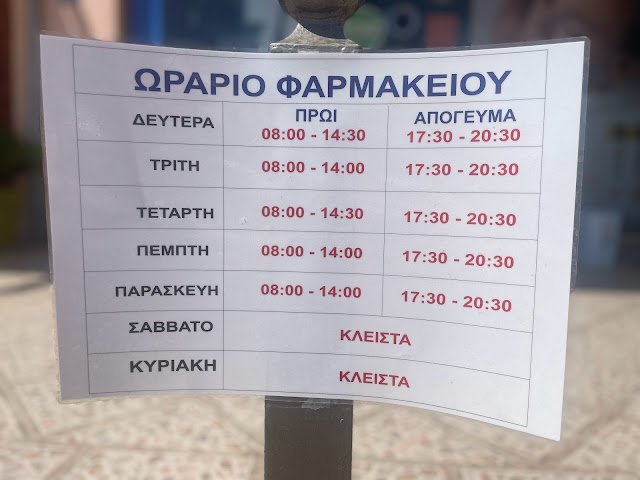 Warto wiedzieć, że w dni wolne, święta oraz po godzinach otwarte są tzw. apteki dyżurne, zwane również "efimereuonta farmakeia" (gr. αφημερεύοντα φαρμακεία). Dla osób potrzebujących wsparcia farmaceutycznego w nietypowych godzinach, jest to bardzo istotna informacja podczas pobytu w Grecji. Na drzwiach zamkniętych aptek można znaleźć aktualizowaną codziennie listę dyżurnych aptek, co ułatwia znalezienie najbliższego miejsca, gdzie można otrzymać niezbędne leki i pomoc farmaceutyczną.