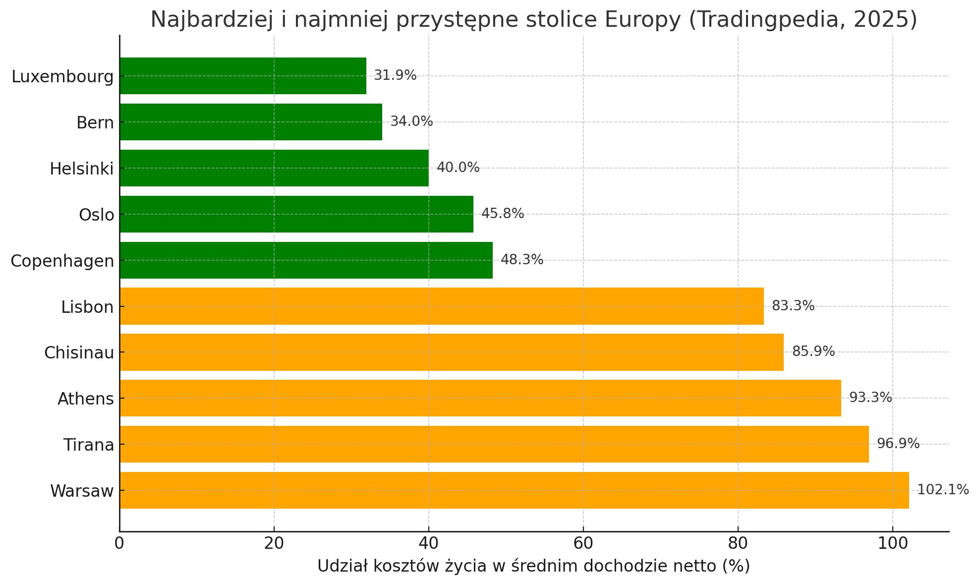 Tradingpedia porównała 37 europejskich stolic, analizując relację między zarobkami a podstawowymi wydatkami na życie. Wnioski są jednoznaczne - Europa rozwija się nierównomiernie.