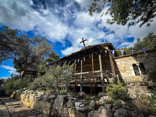 Kościółek Agios Dimitrios Loumbardiaris: U stóp wzniesienia, w cieniu wiekowych sosen, odnajdziecie XV-wieczną bizantyjską świątynię pod wezwaniem św. Dymitra, która jest jednym z najbardziej nastrojowych miejsc w całych Atenach. Jej nazwa, Loumbardiaris, wiąże się z fascynującą lokalną legendą o cudownym ocaleniu budynku przed wystrzałem z potężnej armaty (tzw. loumbardy) w XVII wieku, co do dziś przyciąga w to miejsce rzesze pasjonatów historii i folkloru. Warto zajrzeć do środka nie tylko dla zachwycających fresków, ale przede wszystkim dla unikalnego wystroju wnętrza i kunsztownych, drewnianych wykończeń. Zostały one starannie zaprojektowane przez Dimitrisa Pikionisa w taki sposób, aby surowe, antyczne materiały współgrały z duchową atmosferą i nienachalnie prowadziły widza przez kolejne warstwy czasu . To miejsce stanowi idealny przykład wizji architekta, w której każdy detal, od kamiennej posadzki po sufit, ma służyć medytacji nad majestatem otaczającej przyrody i historii dla unikalnego wystroju wnętrza, który również projektował Pikionis