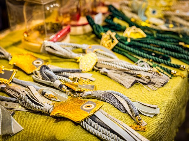 lokalne wyroby rzemieślnicze, takie jak ceramika, tekstylia czy wełniane akcesoria,