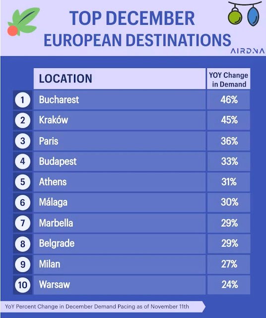 Na tle Grecji warto również zwrócić uwagę na sukcesy Polski w zimowym sezonie wynajmu krótkoterminowego. Kraków, z wynikiem +45% wzrostu popytu w grudniu, zajął drugie miejsce w Europie, ustępując jedynie Bukaresztowi (+46%). Warszawa, z wynikiem +24%, uplasowała się na 10. miejscu, co pokazuje, że polskie miasta również przyciągają turystów w zimowe miesiące.
