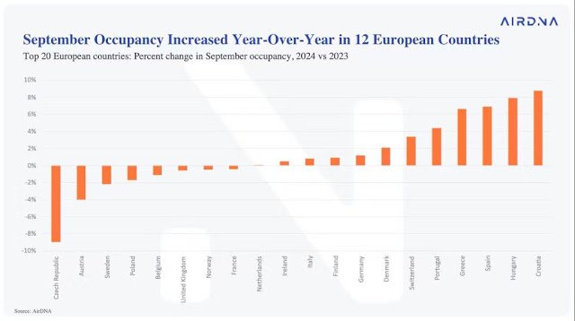 Jesienne miesiące w Grecji przyniosły stabilizację cen wynajmu krótkoterminowego. Średnie ceny spadły o 25% od sierpnia do października, co było łagodniejszym spadkiem w porównaniu z 29% w 2023 roku. Wysoka liczba rezerwacji pozwoliła greckim gospodarzom na uniknięcie drastycznych obniżek cen, co dodatkowo zwiększa atrakcyjność wynajmu krótkoterminowego dla turystów.