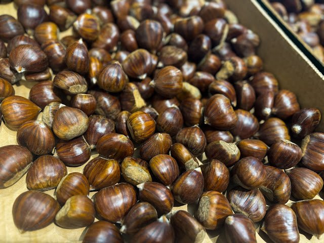 Kasztany, choć botanicznie nie są owocami, zimą stanowią stały element greckich targowisk. Grecy najczęściej spożywają je pieczone lub gotowane, co podkreśla ich naturalną słodycz i delikatną strukturę. To rozgrzewający, sycący przysmak, który doskonale wpisuje się w chłodniejsze dni.