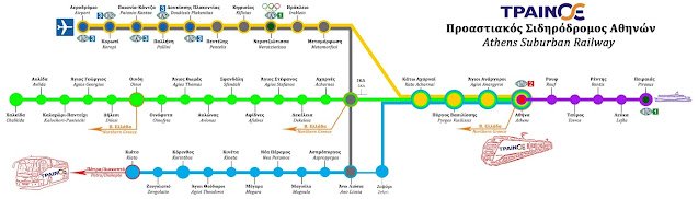Pociągi na trasie Pireus - Kiato kursują w obie strony raz na godzinę. Po drodze pociąg zatrzymuje się na stacjach: Pireus (gr. Πειραιάς), Lefka (gr. Λευκά), Renti (gr. Ρέντη), Tavros (gr. Ταύρος), Rouf (gr. Ρουφ), Ateny (gr. Σταθμός Λαρίσης), Agioi Anargyroi (gr. Άγιοι Ανάργυροι), Pyrgos Vasilissis (gr. Πύργος Βασιλίσσης), Kato Acharnai (gr. Κάτω Αχαρναί), Zefyri (gr. Ζεφύρι), Ano Liosia (gr. Άνω Λιόσια), Aspropyrgos (gr. Ασπρόπυργος), Magoula (gr. Μαγούλα), Nea Peramos (gr. Νέα Πέραμος), Megara (gr. Μέγαρα), Kinetta (gr. Κινέτα), Agioi Theodoroi (gr. Άγιοι Θεόδωροι), Korint (gr. Κόρινθος), Zevgolatio (gr. Ζευγολατιό) i Kiato (gr. Κιάτο).