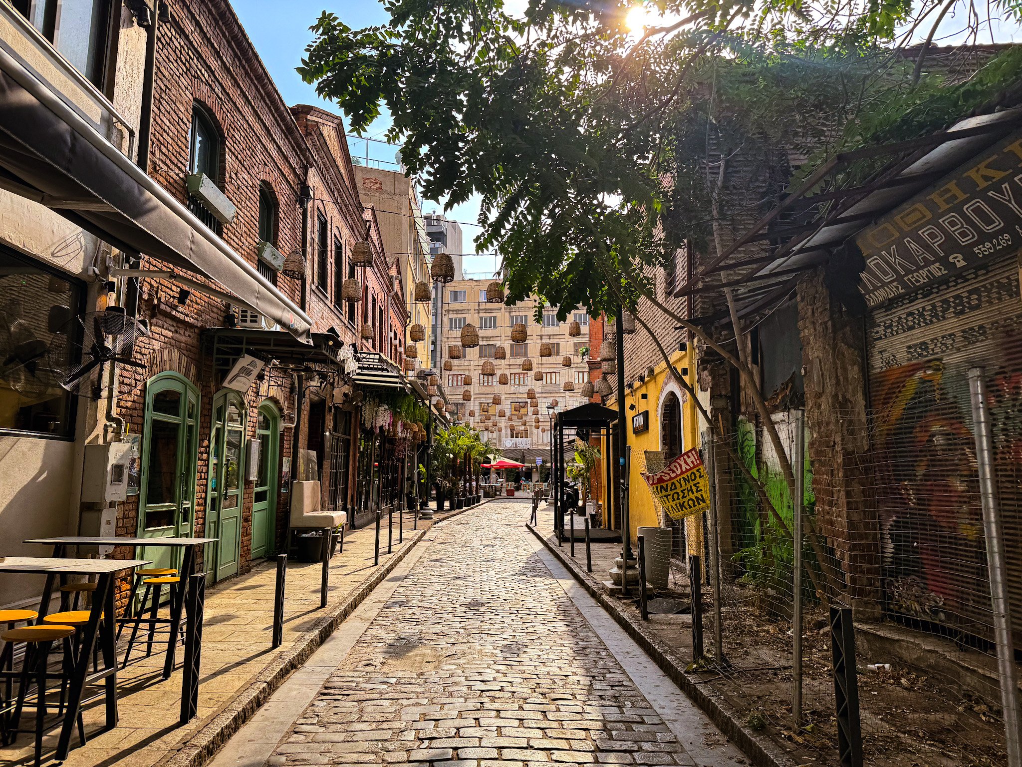 - Lokalizacja: Ladadika, Saloniki, Grecja (dzielnica portowa, strefa piesza).