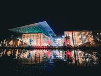W czasie Bożego Narodzenia Experience Park zmienia się subtelnie. Zamiast krzykliwych dekoracji pojawiają się nowoczesne iluminacje, które podkreślają krajobraz, linie zieleni i surową architekturę dawnych hangarów. Efekt jest elegancki w duchu współczesnego designu niż tradycyjnego jarmarku.