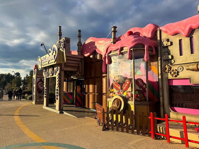 Rodziny z dziećmi naturalnie kierują się w stronę Arctic Circle, gdzie ustawiono figury polarnych zwierząt, oraz do Polar Express Ride, spokojnej, nastrojowej przejażdżki po terenie parku. Całość zaprojektowano tak, by nie przytłaczać nadmiarem bodźców, lecz raczej budować atmosferę świątecznego spaceru niż typowego lunaparku. Jedną z najbardziej efektownych atrakcji pozostaje Water Maze - instalacja dostępna przez cały rok, która w okresie świątecznym zyskuje dodatkową oprawę dźwiękową. Interaktywny labirynt wodny, złożony z setek dysz, staje się sceną dla pokazów zsynchronizowanych z klasycznymi bożonarodzeniowymi melodiami. Dzieci bawią się między strumieniami wody, dorośli obserwują widowisko, które bardziej przypomina nowoczesną instalację artystyczną niż klasyczną atrakcję rozrywkową.