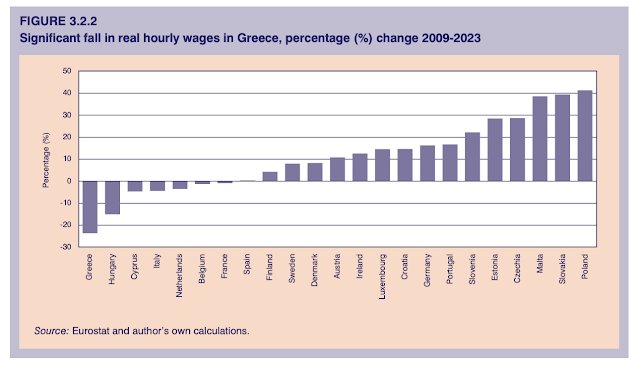 Jednym z najbardziej niepokojących wskaźników dotyczących greckiej gospodarki jest sytuacja na rynku pracy i poziom wynagrodzeń. Od wybuchu kryzysu finansowego w 2008 roku, płace godzinowe w Grecji praktycznie stanęły w miejscu. Co gorsza, od 2009 roku zaczęły one spadać, co sprawiło, że obecnie Grecja zajmuje ostatnie miejsce w Unii Europejskiej pod względem wynagrodzeń za godzinę pracy, mierząc to według siły nabywczej. Oznacza to, że wielu Greków, mimo że pracują regularnie, zarabia mniej niż wynosił poziom ubóstwa w 2009 roku.