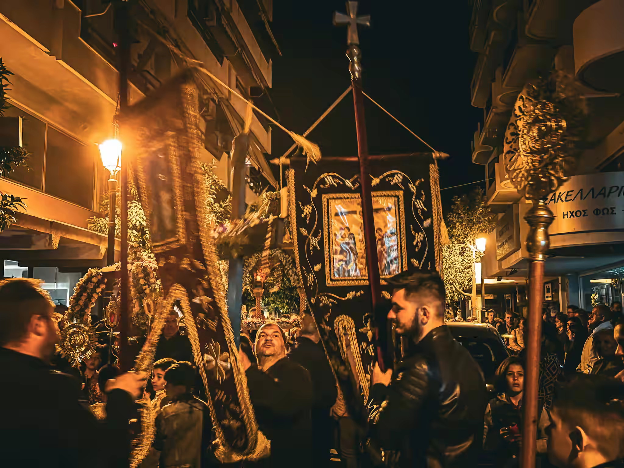Dokładnie o północy dzwony zaczynają rozbrzmiewać radośnie, a kapłan przekazuje wiernym "święty ogień", głosząc słowa "Chrystus Zmartwychwstał" (gr. Χρήστος Ανέστη), na co zgromadzeni odpowiadają chórem "Prawdziwie Zmartwychwstał" (gr. Αληθώς Ανέστη), przekazując ogień pozostałym wiernym za pomocą świec, zwanych lambadami. W tym czasie greckie niebo rozjaśnia się od fajerwerków. To naprawdę wyjątkowy moment, pełen głębokiego uniesienia i radości, symbolizujący rozpoczęcie hucznej celebracji oraz wyraz wiary w Jego Zmartwychwstanie.