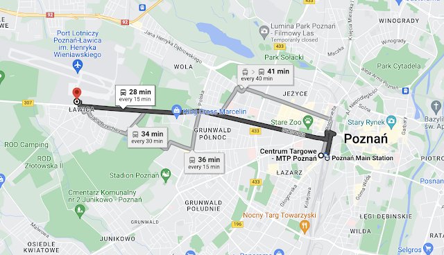 Το Διεθνές Εκθεσιακό Κέντρο Poznan (MTP) βρίσκεται στην καρδιά της Πόζναν, στην οδό Głogowska, λίγα μόλις λεπτά από τον κεντρικό σιδηροδρομικό σταθμό και 6 χιλιόμετρα από το αεροδρόμιο Ławica. Η εύκολη πρόσβαση καθιστά το MTP ιδανικό προορισμό για επισκέπτες από όλο τον κόσμο.