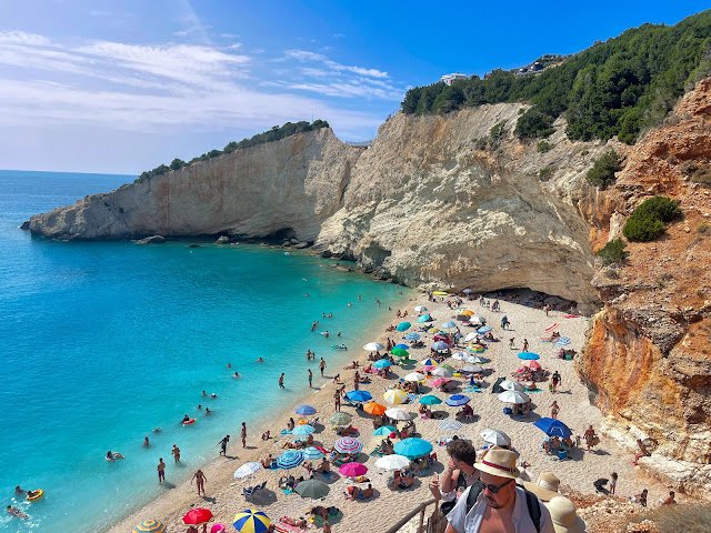 Porto Katsiki to prawdziwa perełka Lefkady, uważana jest za jedną z najpiękniejszych i najczęściej fotografowanych plaż w całej Grecji. Woda w Porto Katsiki posiada nieziemski lazurowy odcień, a cała zatoka dookoła plaży otoczona jest ogromnymi wapniowymi klifami.